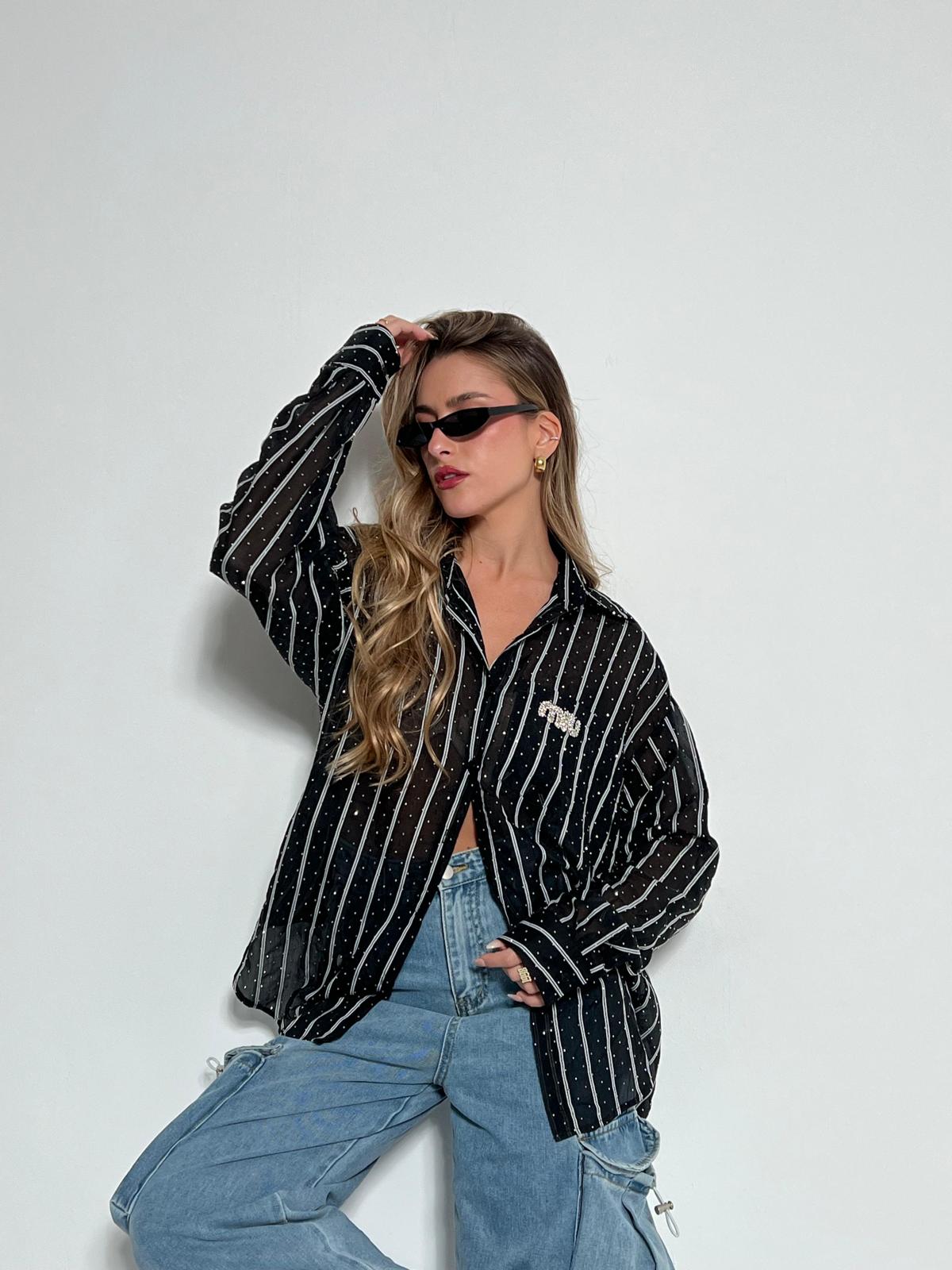 מכופתרת מושלמת שילוב כיתוב בכיס